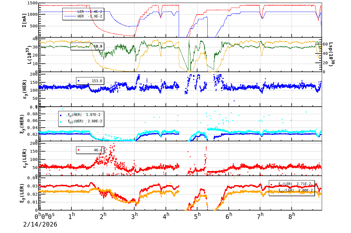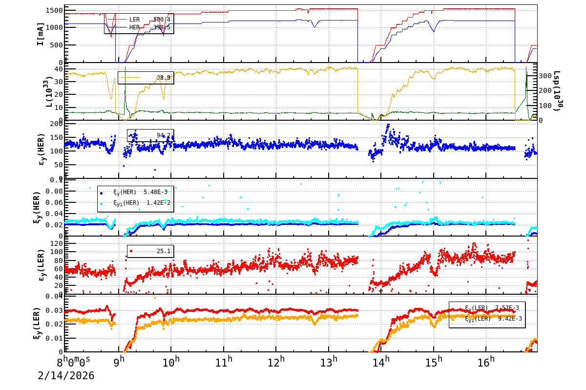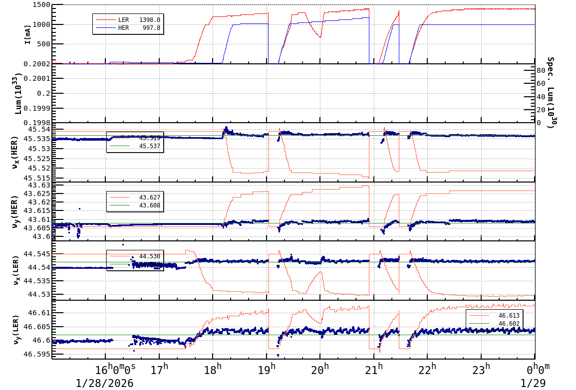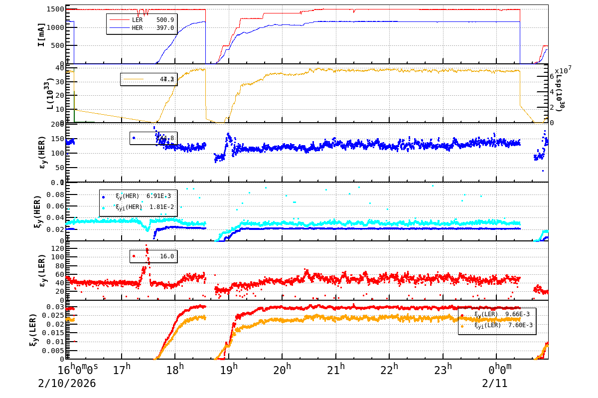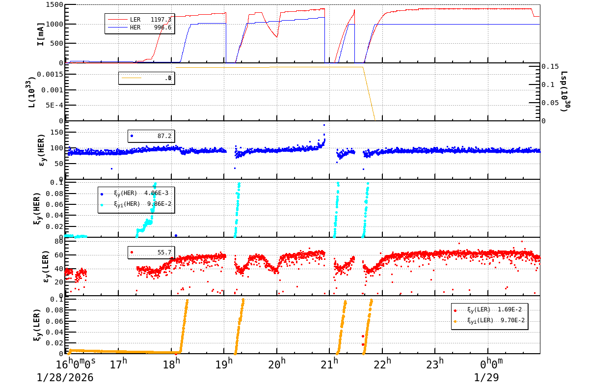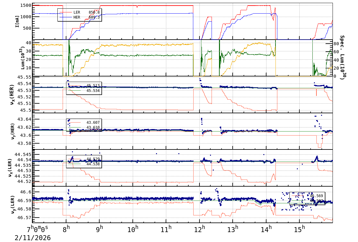| Date/Time | Overview | Damping Ring | Injection | Beam Size | Betatron Tune | IP Knob | Injection Parameter | Belle II Background | B-B Tune Shift | Skew Quad |