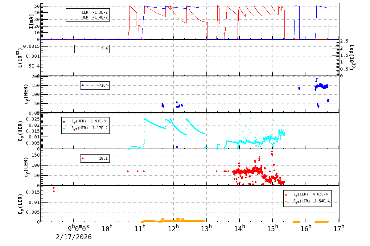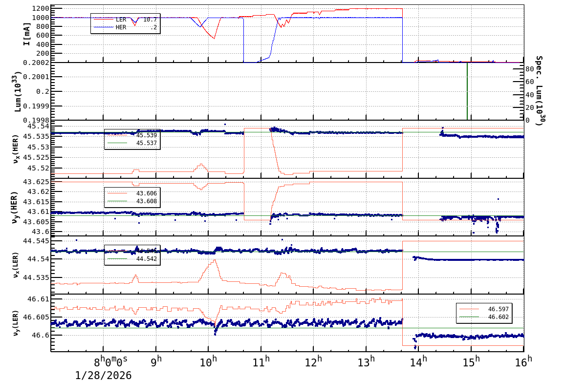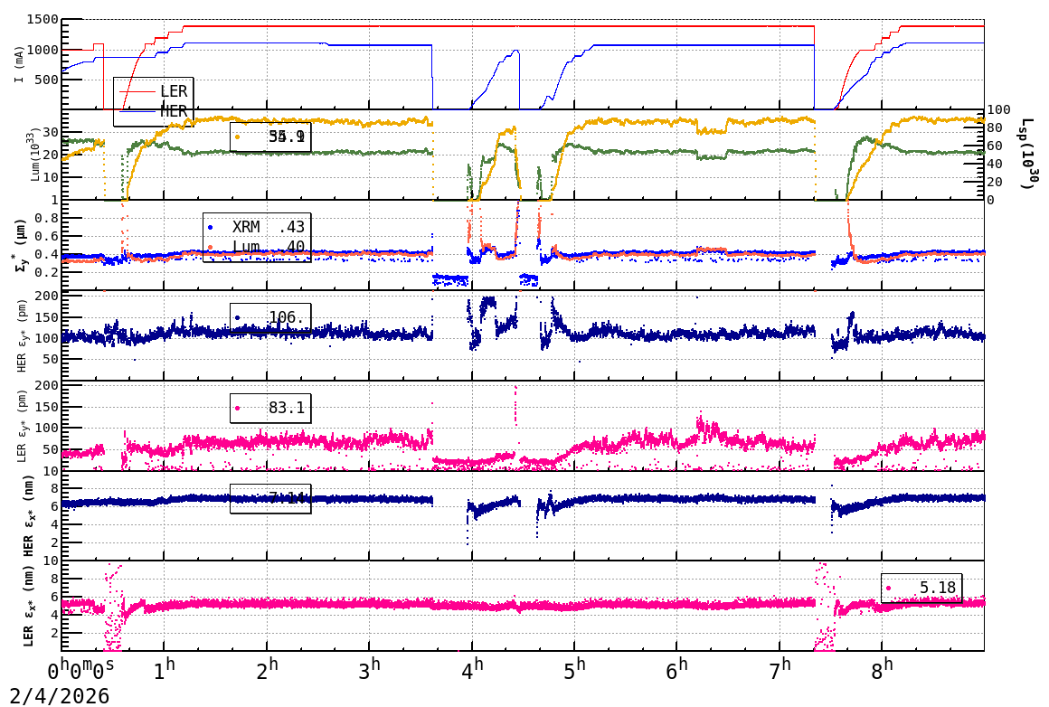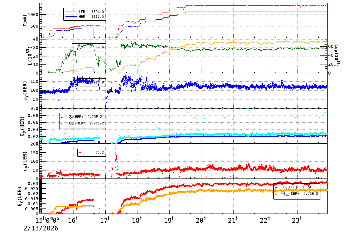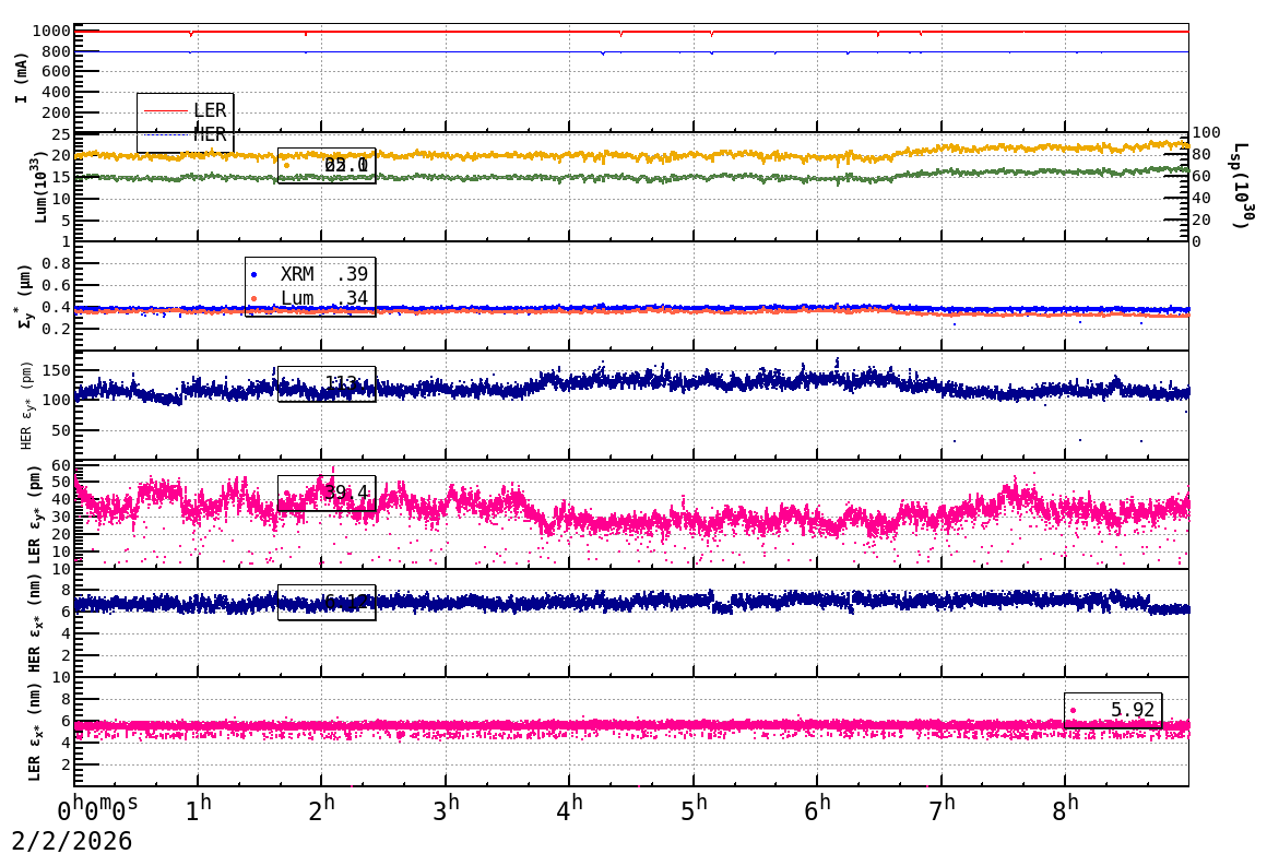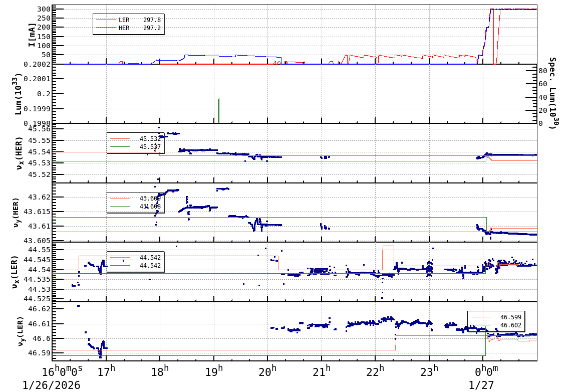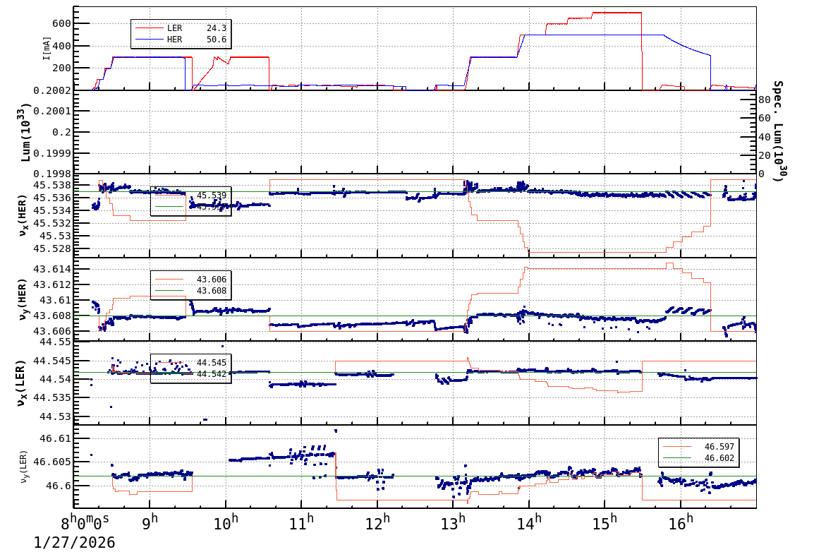 | Date/Time | Overview | Damping Ring | Injection | Beam Size | Betatron Tune | IP Knob | Injection Parameter | Belle II Background | B-B Tune Shift | Skew Quad |