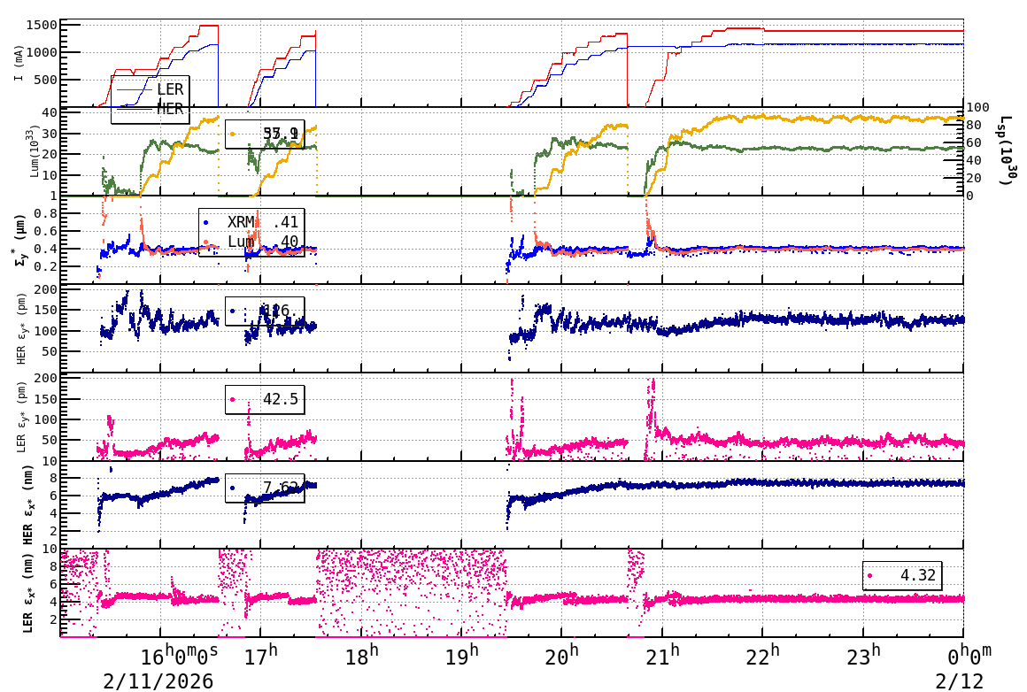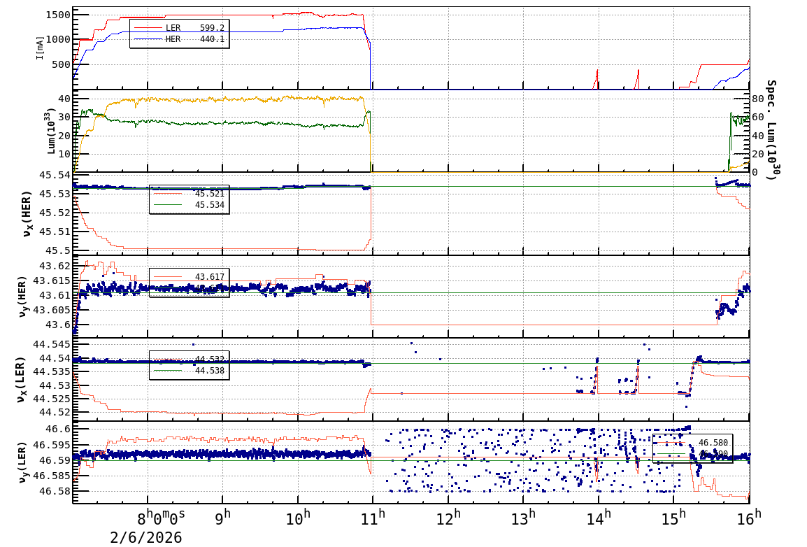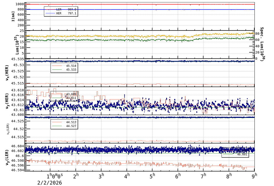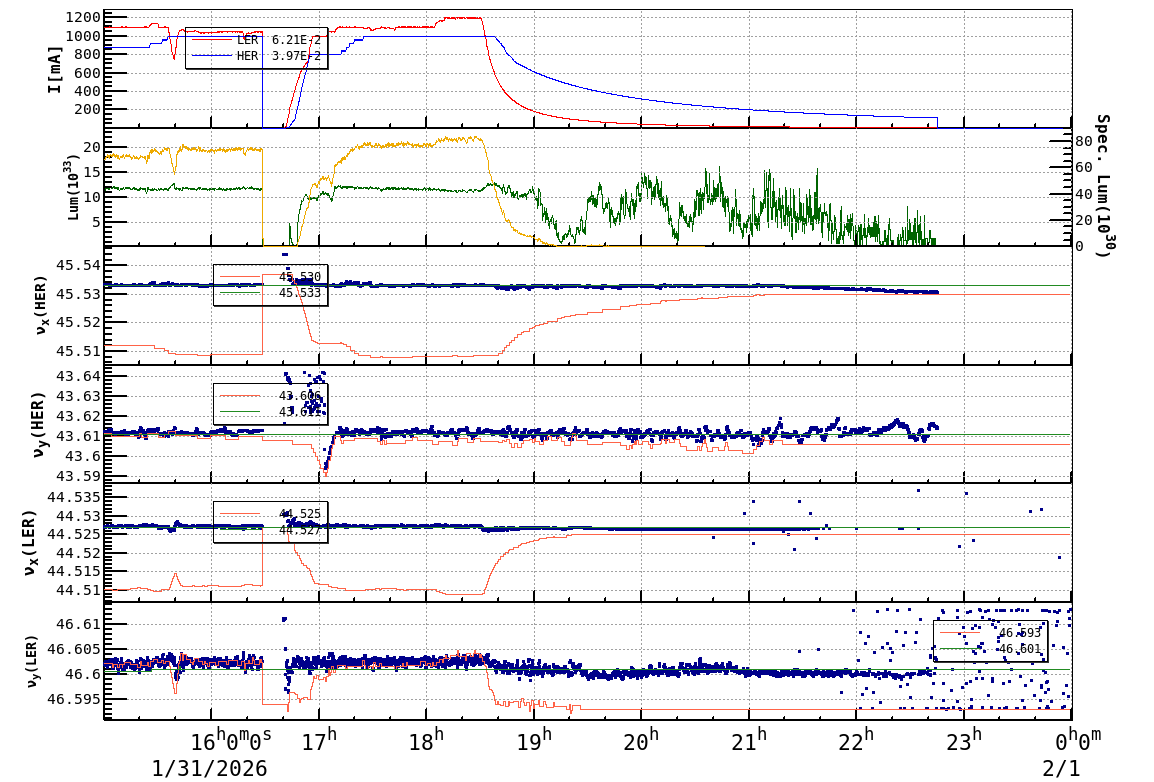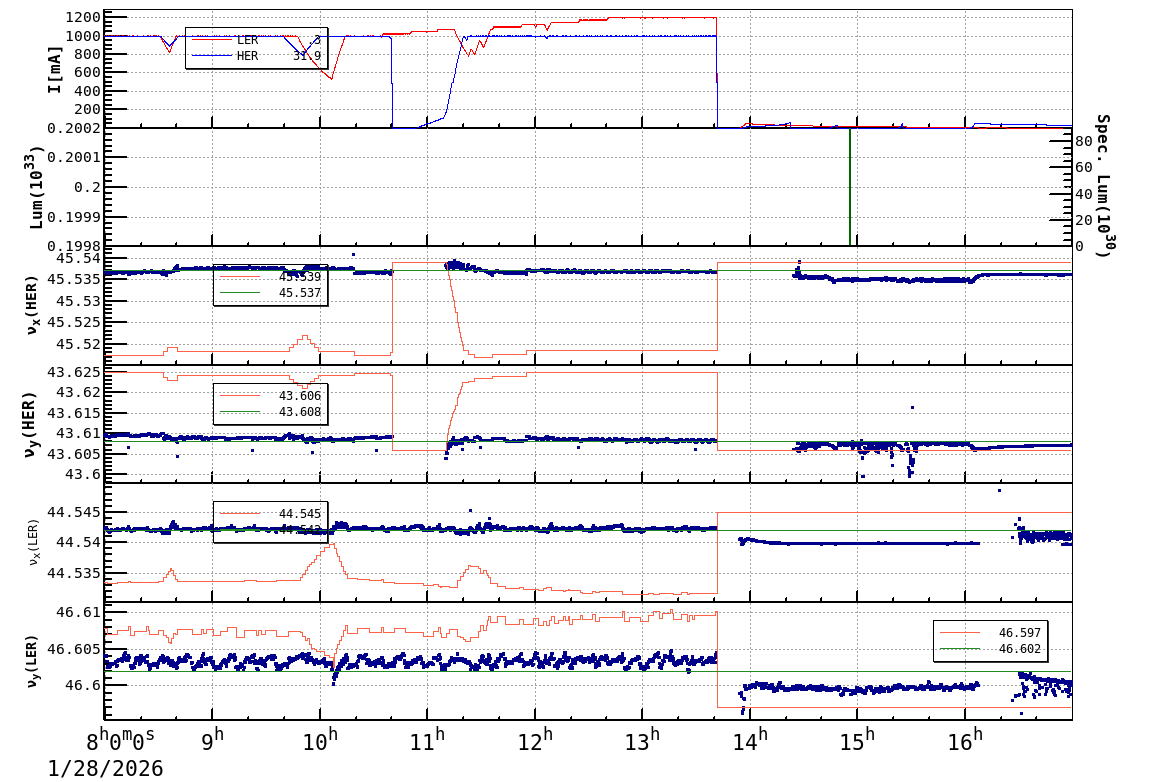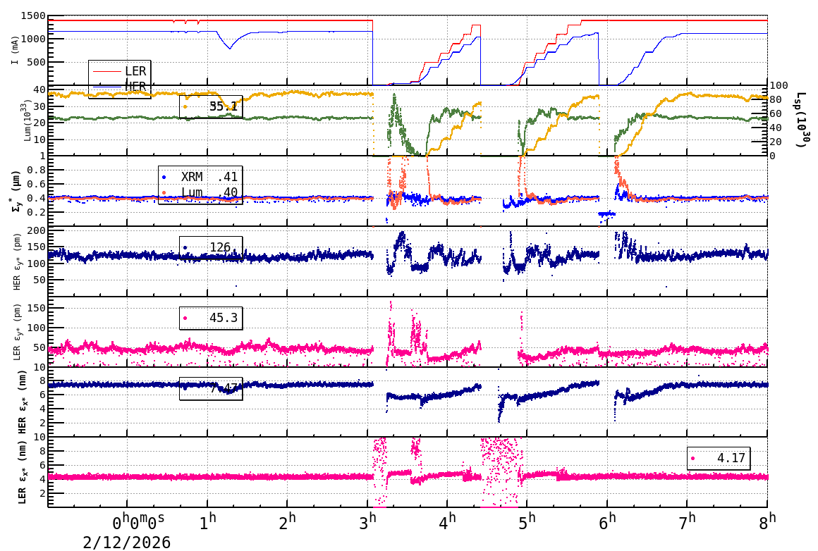| Date/Time | Overview | Damping Ring | Injection | Beam Size | Betatron Tune | IP Knob | Injection Parameter | Belle II Background | B-B Tune Shift | Skew Quad |