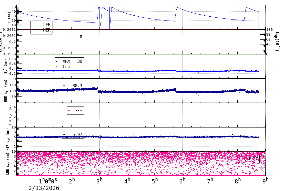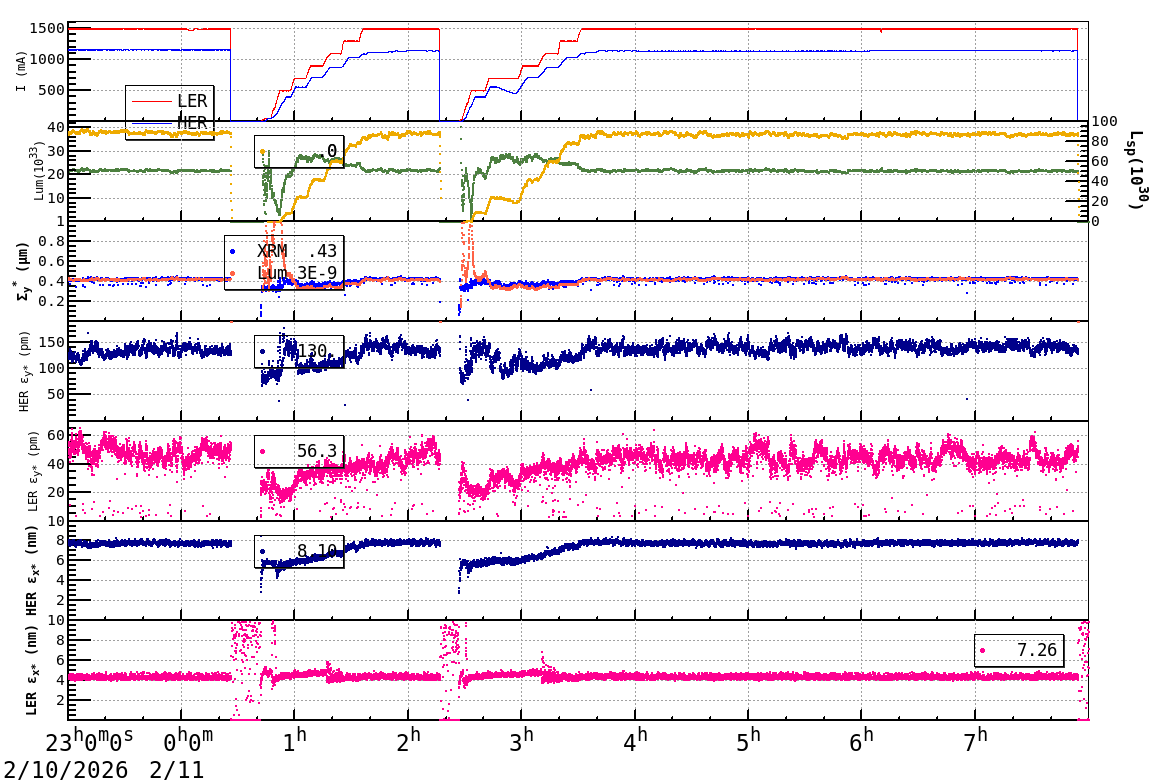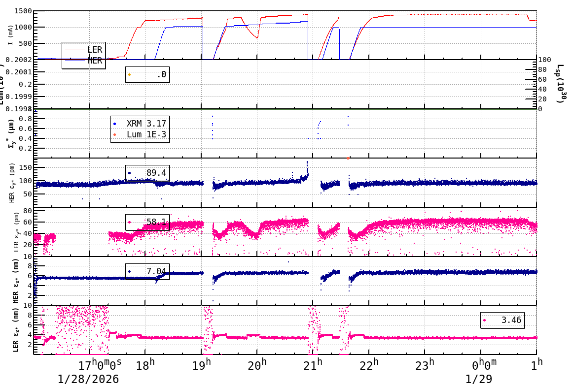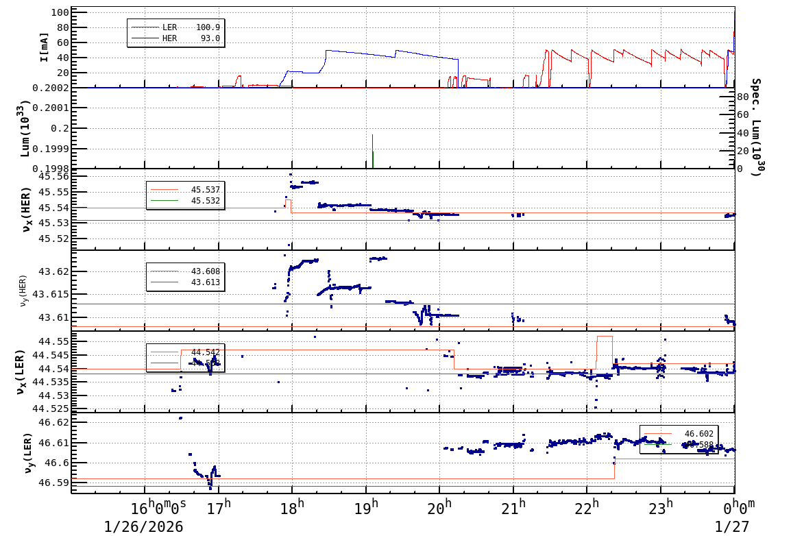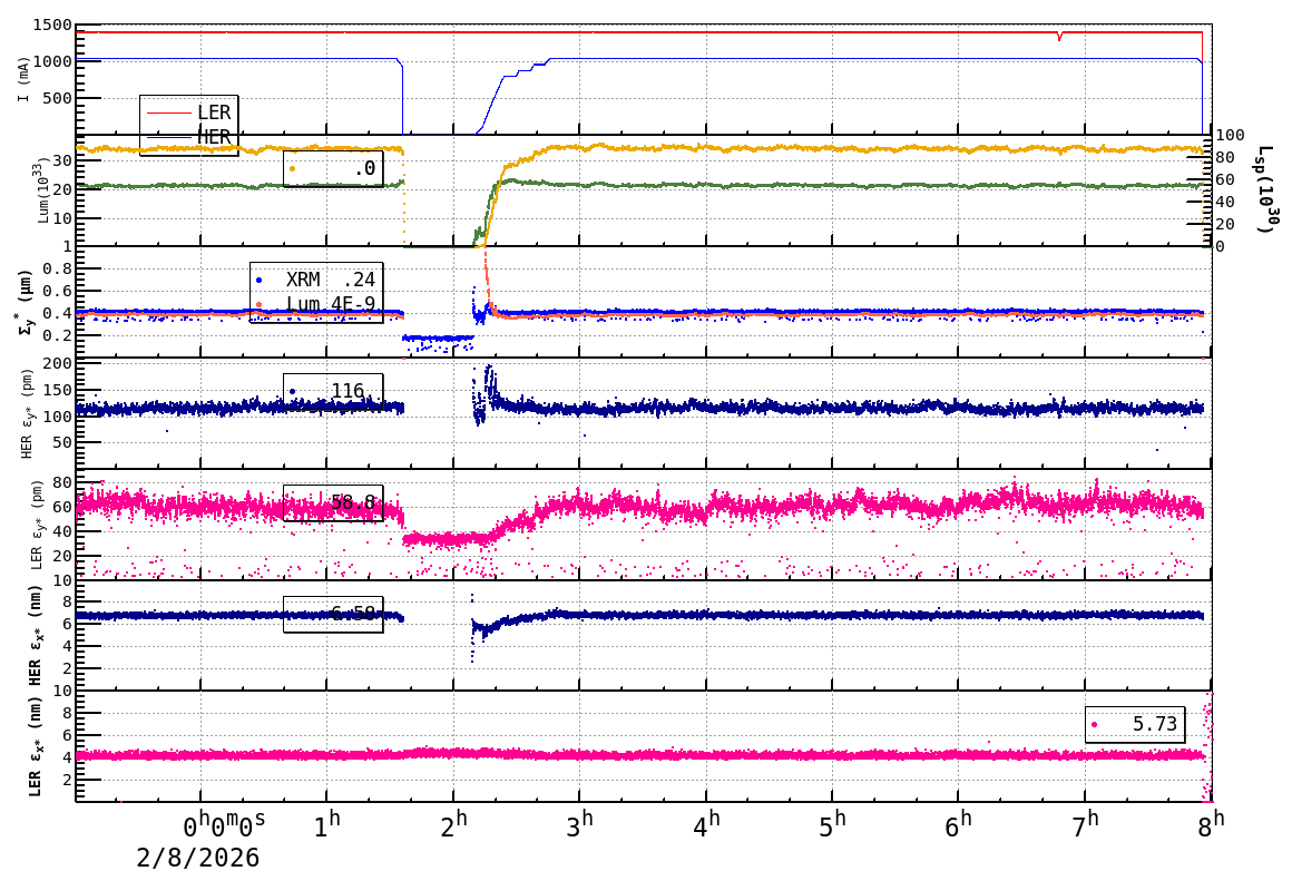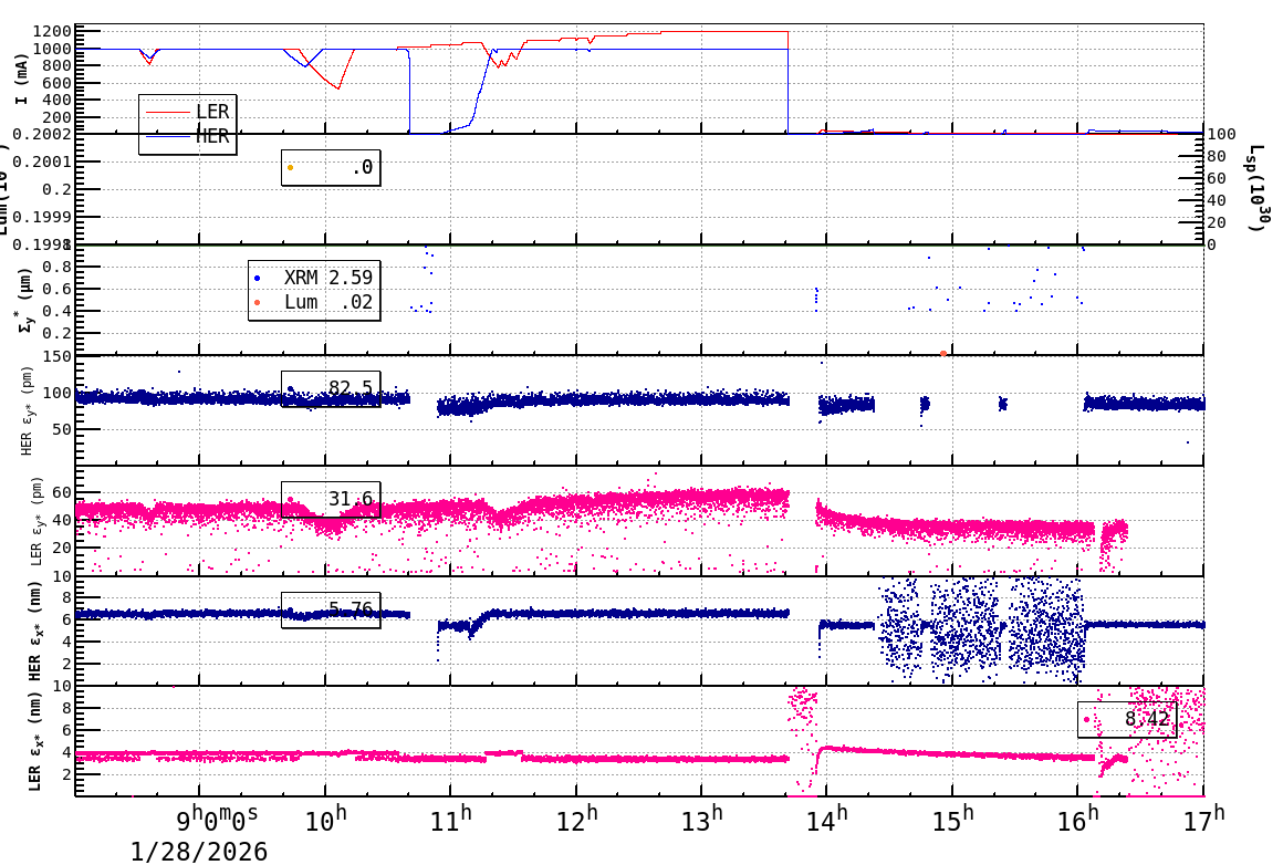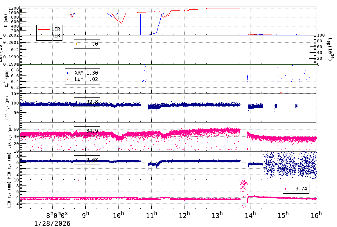 | Date/Time | Overview | Damping Ring | Injection | Beam Size | Betatron Tune | IP Knob | Injection Parameter | Belle II Background | B-B Tune Shift | Skew Quad |