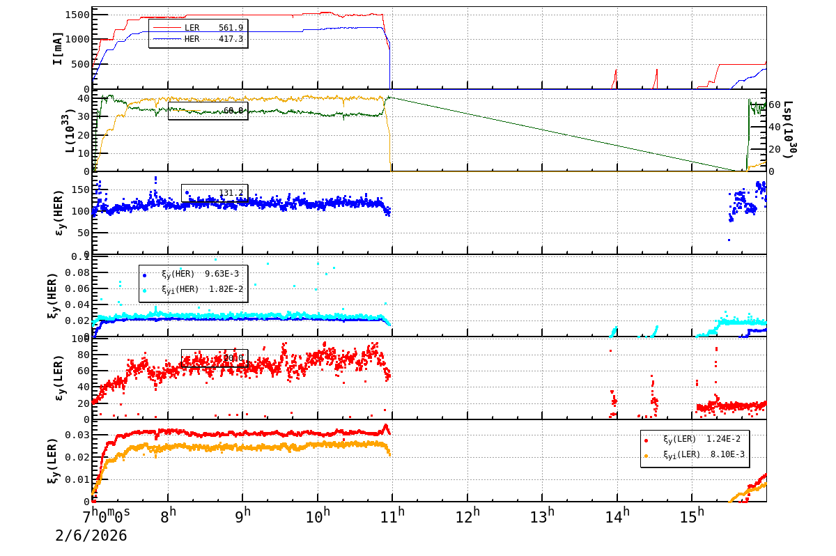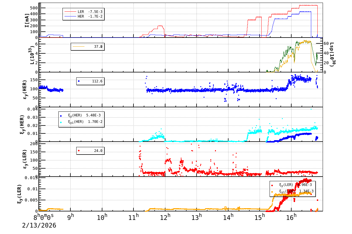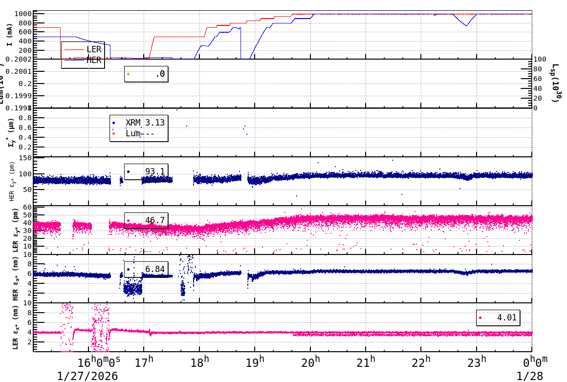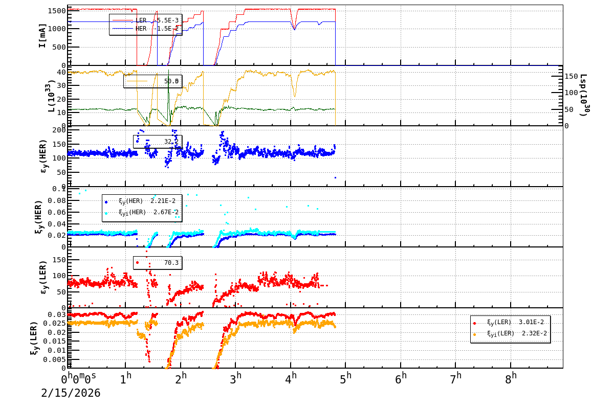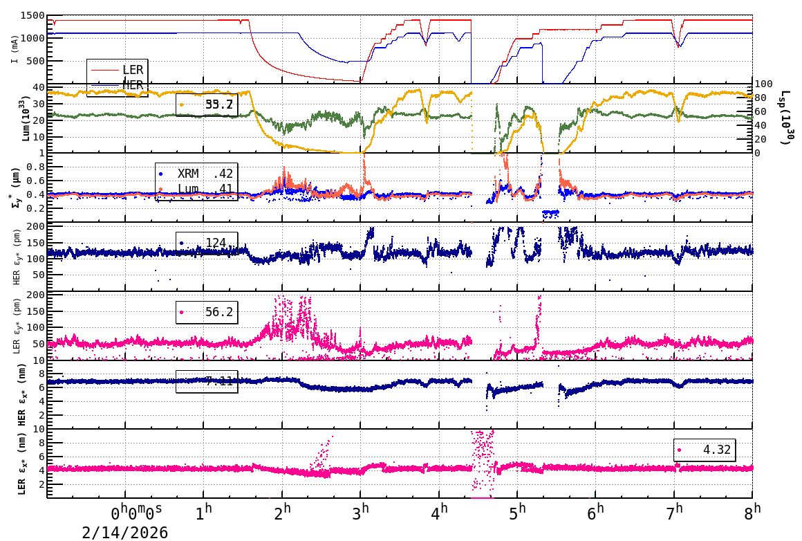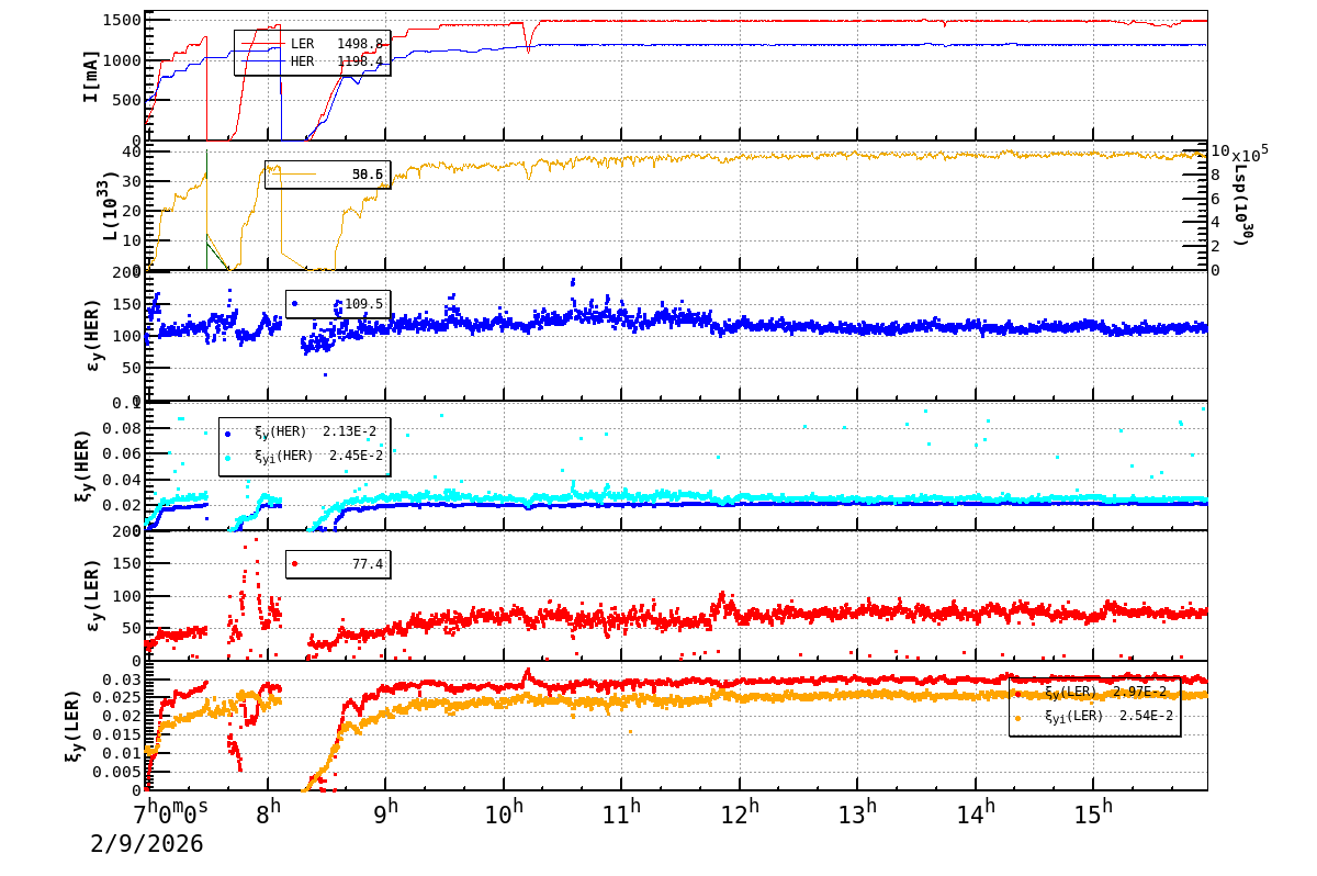 | Date/Time | Overview | Damping Ring | Injection | Beam Size | Betatron Tune | IP Knob | Injection Parameter | Belle II Background | B-B Tune Shift | Skew Quad |