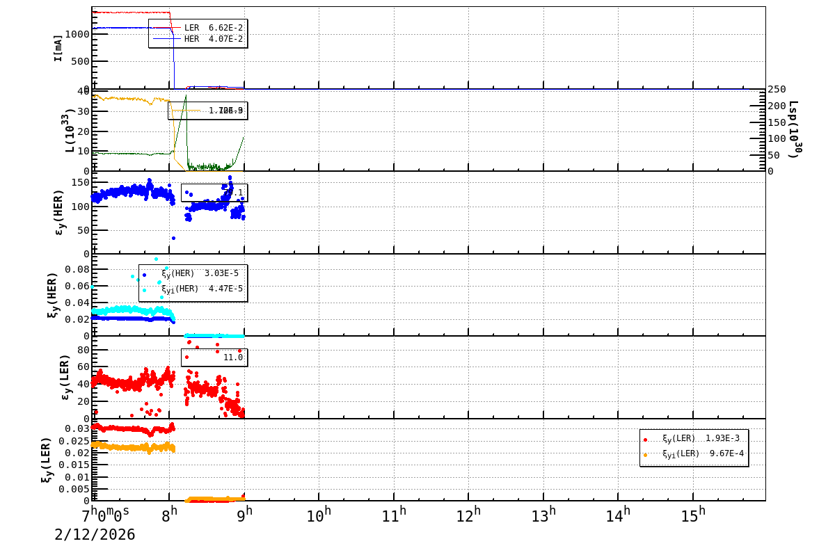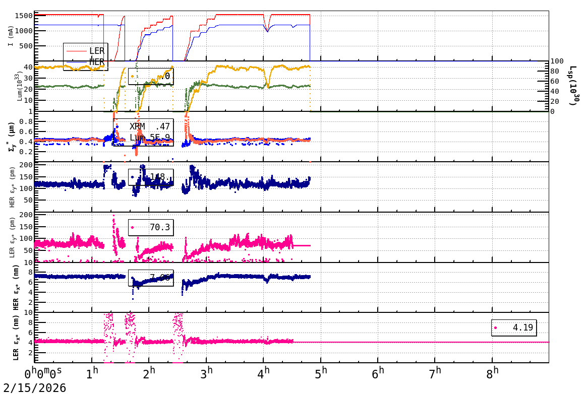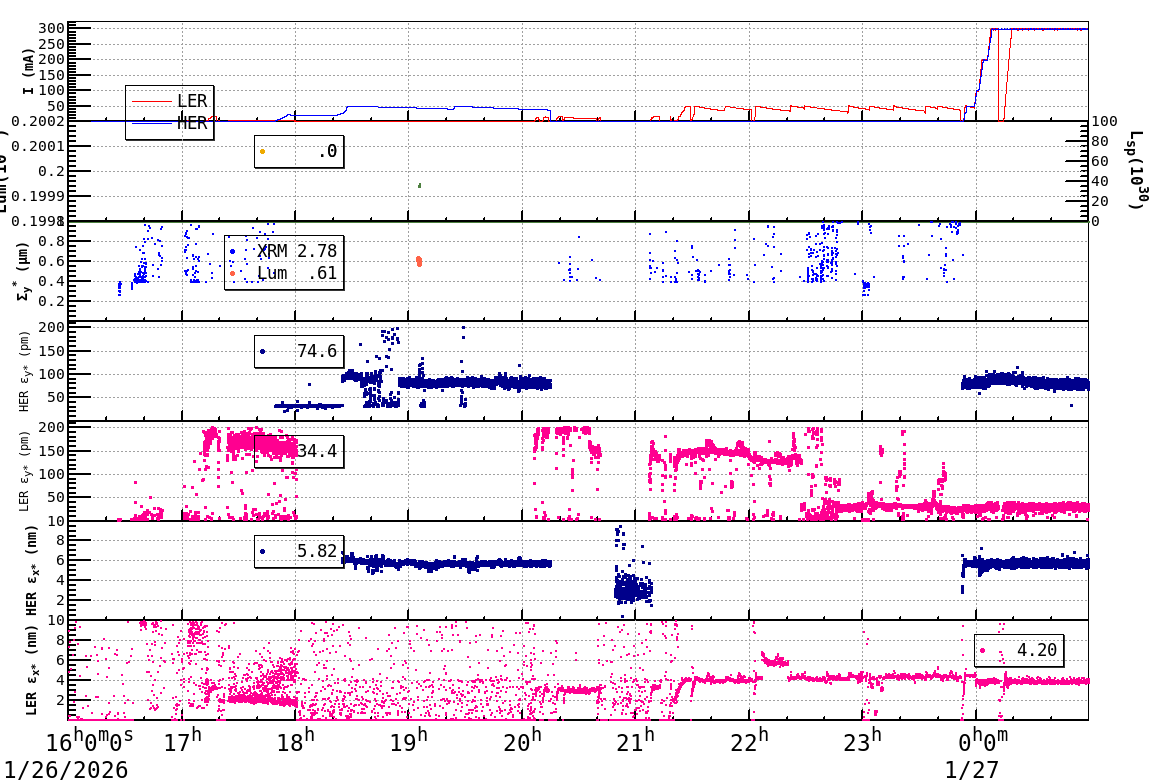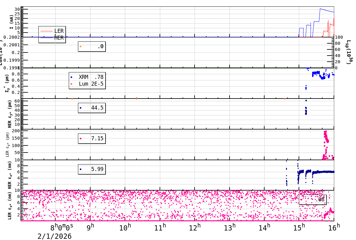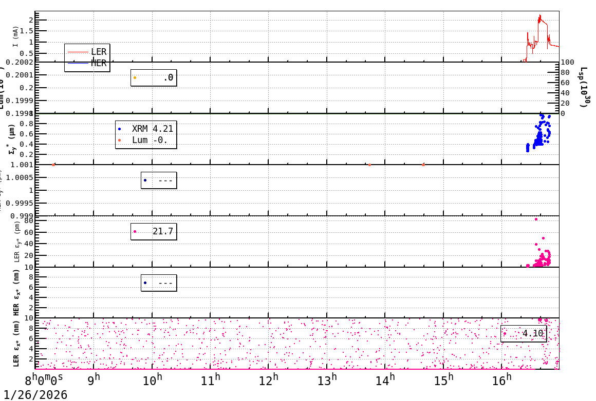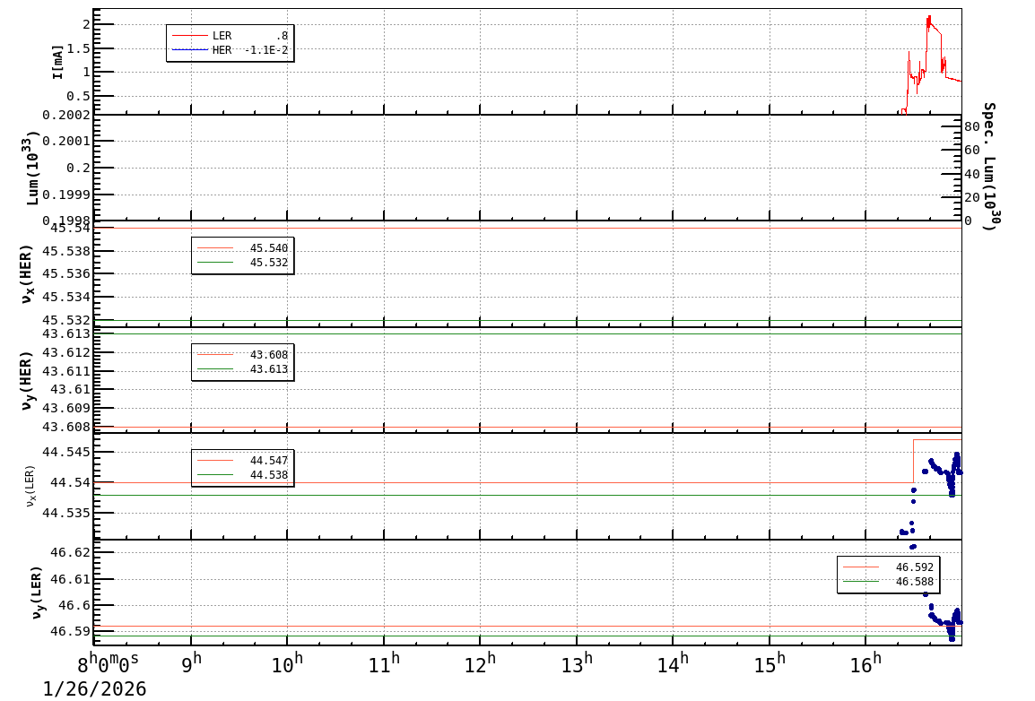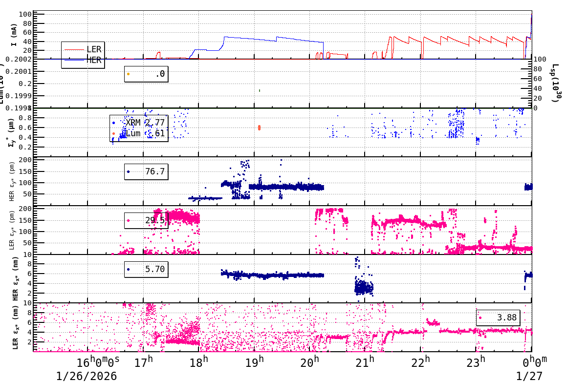 | Date/Time | Overview | Damping Ring | Injection | Beam Size | Betatron Tune | IP Knob | Injection Parameter | Belle II Background | B-B Tune Shift | Skew Quad |